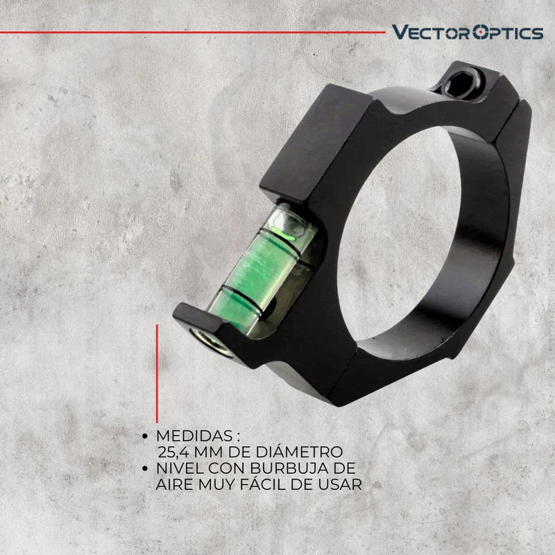 El Montaje Nivelador Vector Optics 25.4mm Offset Bubble es una herramienta imprescindible para los tiradores que desean eliminar cualquier inclinación no deseada (cant) en sus disparos. Diseñado específicamente para armas de fuego reales, este dispositivo de nivelación asegura que su mira esté perfectamente alineada, garantizando la máxima precisión en cada disparo. Su burbuja de aire lateral proporciona una indicación clara y rápida de la nivelación, ayudándole a mantener una alineación constante.