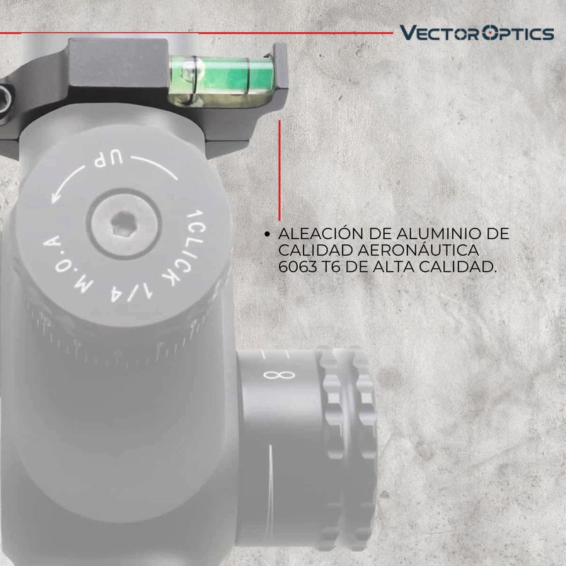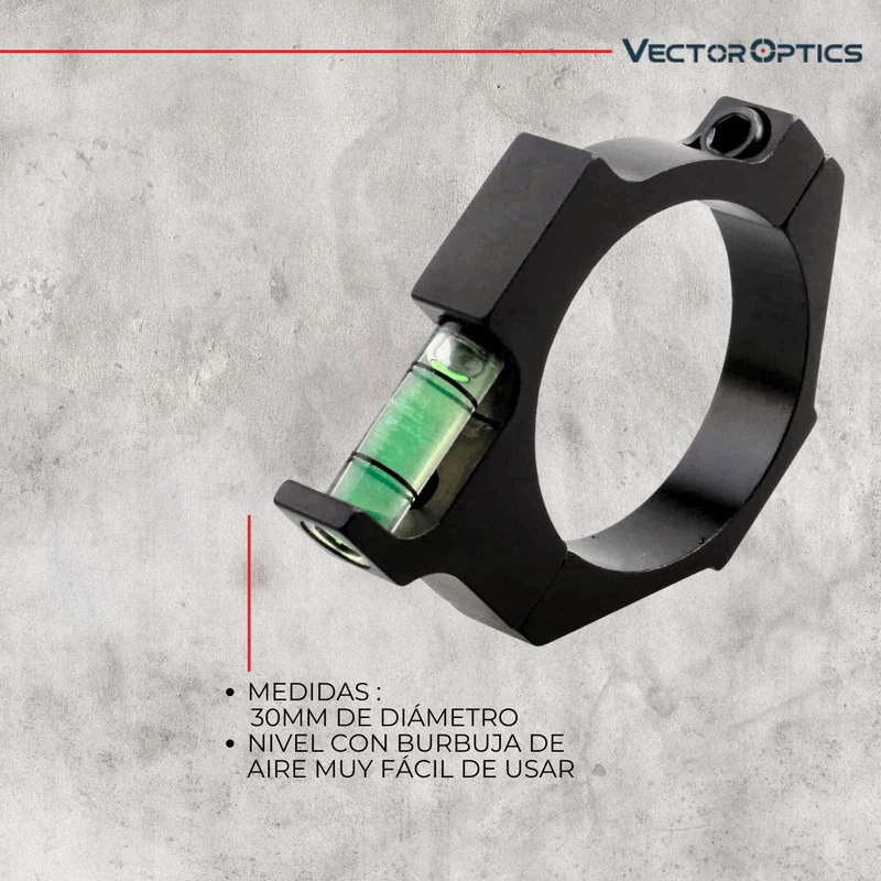 El Montaje Nivelador Vector Optics 30mm Offset Bubble es una herramienta esencial para los tiradores que buscan una precisión inigualable. Este dispositivo de nivelación asegura que su mira esté perfectamente alineada, eliminando cualquier inclinación no deseada durante el disparo. Su burbuja de aire flotante proporciona una indicación clara y rápida del nivel, ayudándole a mantener una postura y alineación consistentes.