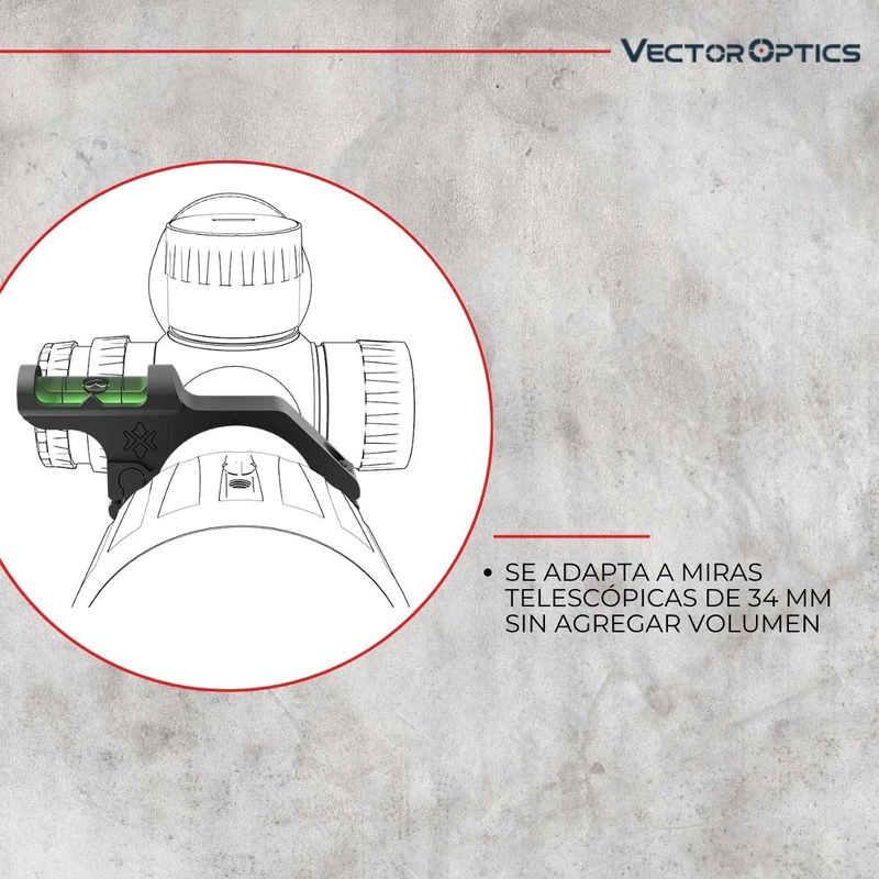 El Montaje Nivelador Vector Optics 34MM Offset Bubble GenII es la solución perfecta para los tiradores que buscan precisión sin comprometer la comodidad. Este nivelador de burbuja de diseño delgado se adapta a visores de 34 mm sin añadir volumen, proporcionando una visibilidad óptima y una alineación precisa. Posicionado en el lateral del anillo, permite una mejor visibilidad sin necesidad de comprometer la posición de la mejilla, garantizando una experiencia de disparo cómoda y eficiente.