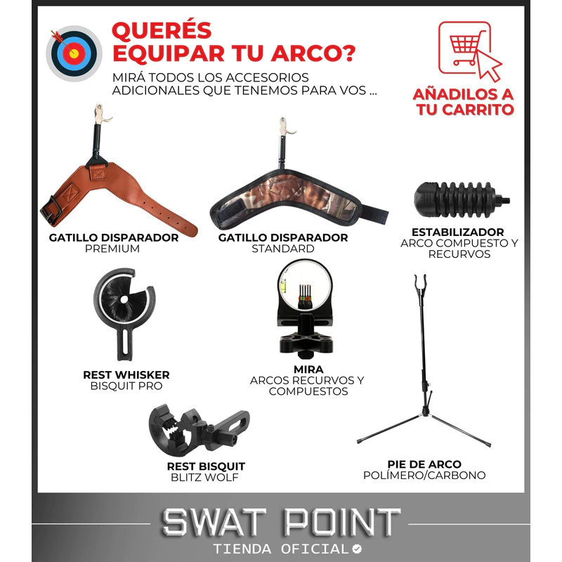 Si buscás un equipo completo y de calidad profesional, este combo de Swat Archery M120 es la elección perfecta. Disponible en dos variantes: Black con funda negra o Camuflado con funda camuflada, para que elijas el que mejor se adapte a tu estilo. ¡Experimentá la precisión y potencia de un arco diseñado para exigentes!