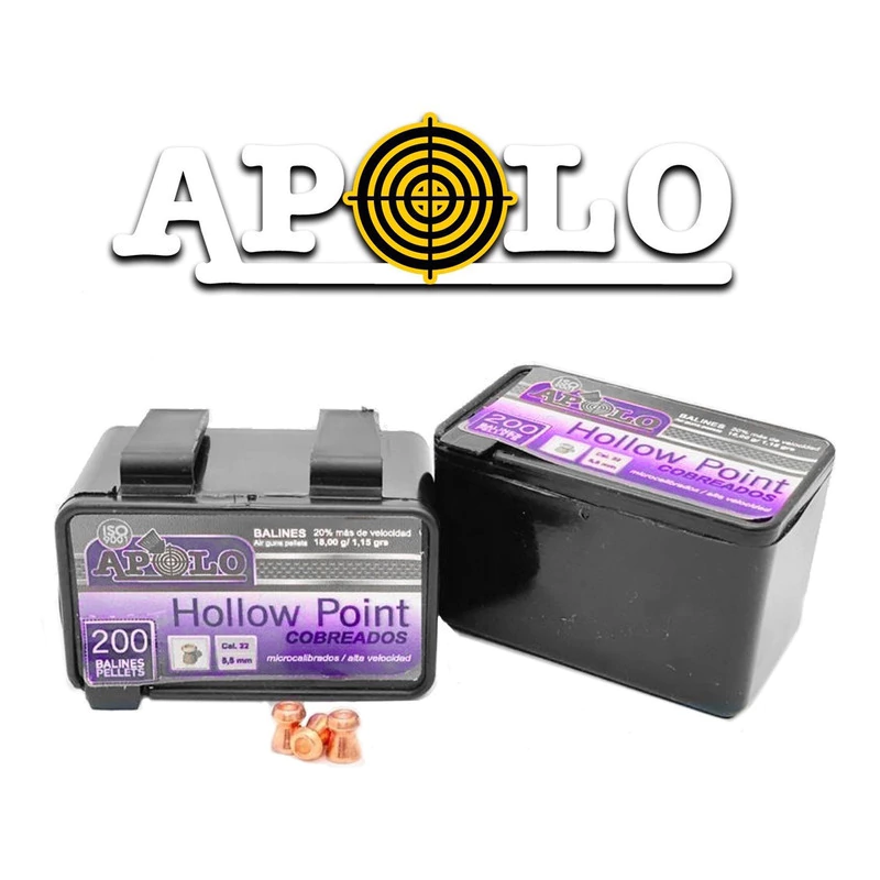 Balines Apolo Hollow Point Cobreados X200 - 5.5 mm ideal para caza pluma.