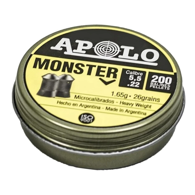 Balines Apolo Monster X200 - 5.5 mm con un peso de 26 gr, ideal para largas distancias.