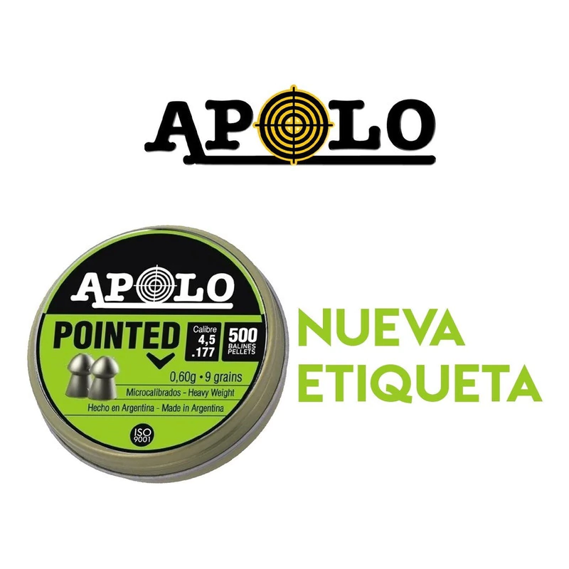 Balines Apolo Pointed 4.5 mm para rifles y pistolas de aire comprimido y gas comprimido. Ideales para caza.