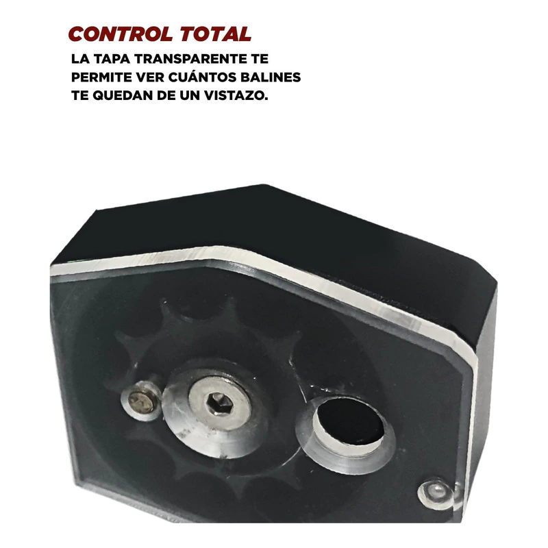 Fabricado con materiales plásticos resistentes, garantiza durabilidad y resistencia ante el desgaste del uso frecuente. Su diseño rotativo proporciona una recarga rápida y fácil, lo que te permite maximizar tu tiempo en el campo o en el polígono de tiro.