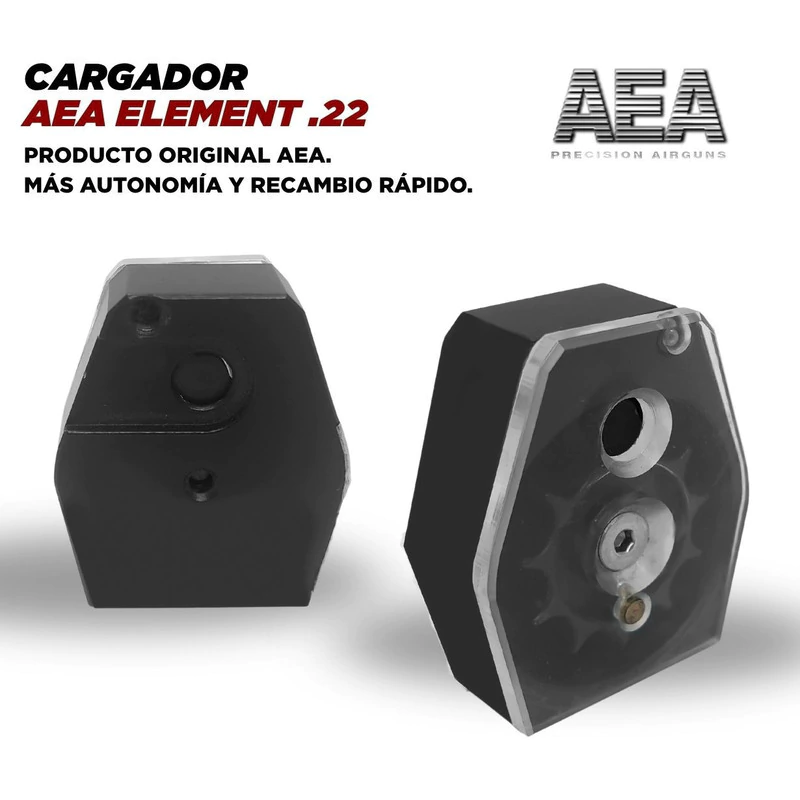 Compatible con los rifles AEA Element de 5.5 mm /.22, este cargador es esencial para quienes buscan optimizar su rendimiento. Además, su ingeniería de alta calidad asegura que cada disparo sea tan preciso como el anterior, permitiéndote concentrarte en tu objetivo con confianza.