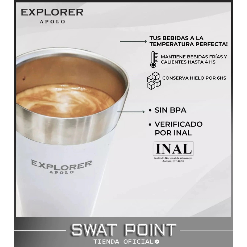 Para completar el combo, los 2 vasos térmicos Explorer T1 de 473 ml son perfectos para mantener tus bebidas frías o calientes por horas, gracias a su doble capa de acero inoxidable y aislamiento de pared doble. Son livianos, compactos y libres de BPA, ideales para llevar en la mochila, el auto o usar en casa.