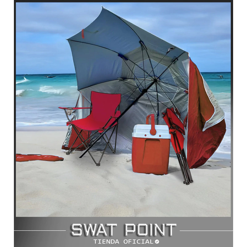 ¡Prepará tus días al aire libre con este combo perfecto para la playa o el camping! Este set incluye una sombrilla con paraviento de 2,5 metros, diseñada para brindarte protección contra el viento y el sol, y dos sillones director plegables que combinan comodidad y practicidad. Disponibles en colores rojo y azul, este combo es ideal para disfrutar en familia o con amigos.