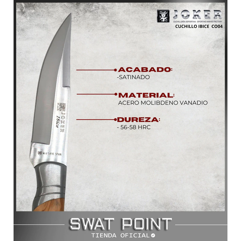 El cuchillo Joker Ibice es el compañero perfecto para los amantes de la naturaleza, la caza y las actividades al aire libre. Fabricado en Albacete, España, combina más de 30 años de tradición en cuchillería con un diseño moderno y funcional. Su hoja de acero Molibdeno Vanadio, con acabado satinado y punta caída, asegura un rendimiento confiable y preciso en tareas de desollado, corte y preparación de alimentos en campamentos.