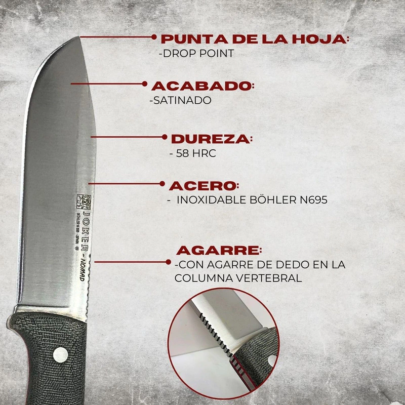 El cuchillo Joker línea Nomad, es una herramienta excepcional diseñada para aventureros y amantes de la naturaleza