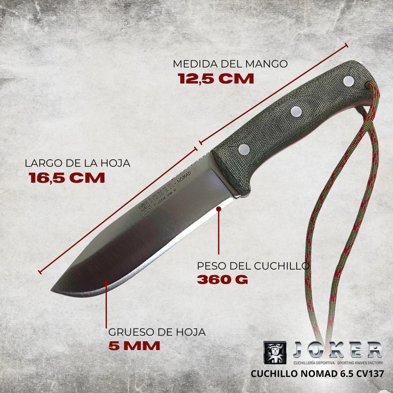El cuchillo Joker línea Nomad, es una herramienta excepcional diseñada para aventureros y amantes de la naturaleza