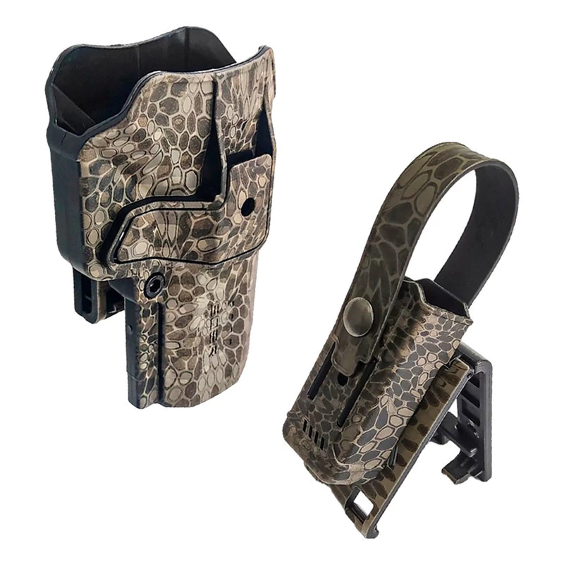 El sistema de retención nivel 2 proporciona una sujeción segura, evitando que el arma se salga accidentalmente. Además, cuenta con un porta cargador adicional para tener tus cargadores de repuesto al alcance de la mano.