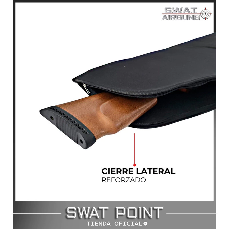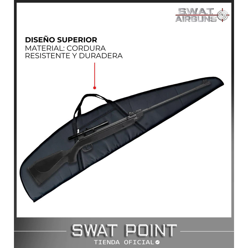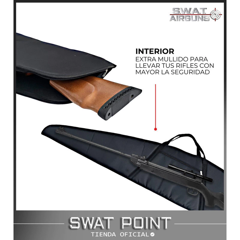 Está confeccionada con materiales de alta calidad y duraderos para garantizar la seguridad y protección de tu rifle o carabina. Acolchada en su interior, lo que ayuda a amortiguar los golpes y proteger el arma de posibles impactos durante el transporte.