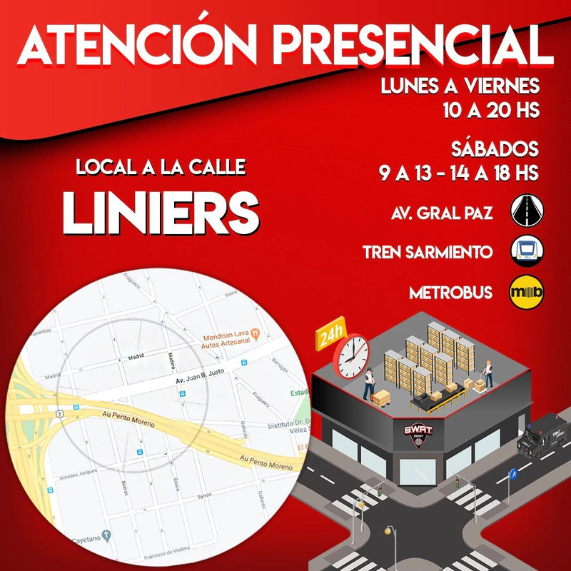 • Estamos ubicados en el barrio de Liniers, a pocas cuadras de la estación del tren Sarmiento y del Metrobus de Av. Juan B. Justo.