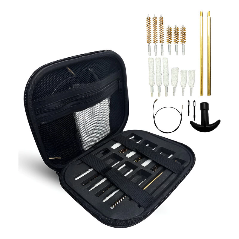 Su diseño universal lo hace compatible con distintos calibres, asegurando versatilidad y comodidad en un solo set. Gracias a su estuche compacto de nylon, podés transportarlo fácilmente y mantener cada pieza organizada para usarla en cualquier momento.