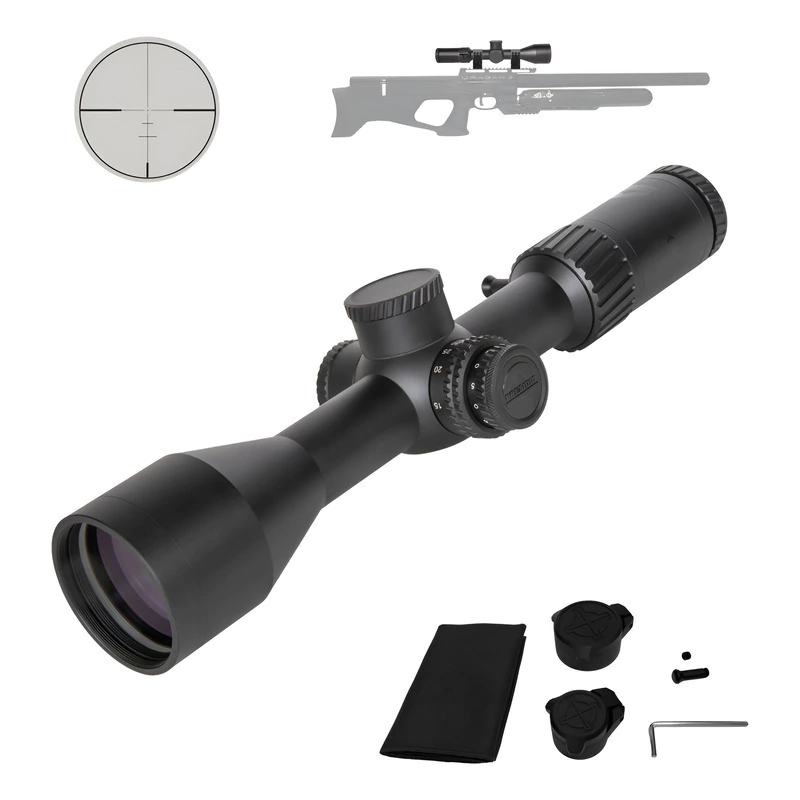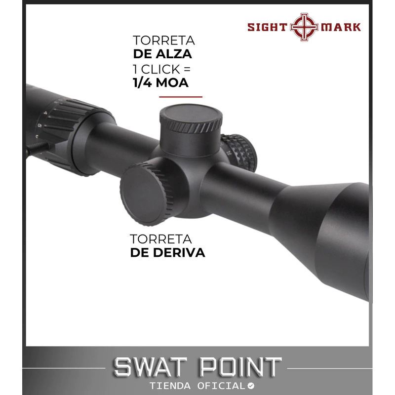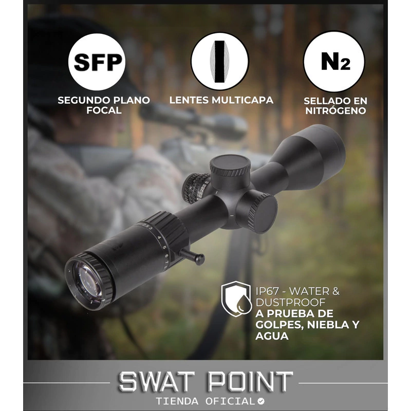 Su construcción robusta incluye un tubo de una sola pieza de 30 mm fabricado en aluminio aeronáutico, lo que le brinda una gran resistencia a los impactos, al agua y al polvo. Las torretas bajas con tapa tienen un diseño táctil con clics audibles, y cuentan con tope de cero integrado para mayor precisión en el ajuste de elevación y deriva. Además, las ópticas están completamente multitratadas para mejorar la transmisión de luz y ofrecer una imagen más clara y definida.