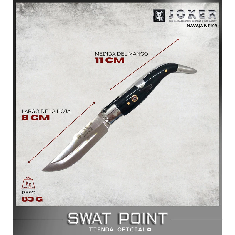 La navaja Joker Clásica es una herramienta versátil y elegante, ideal para cualquier amante de las actividades al aire libre. Diseñada para pesca, caza, camping y senderismo, su hoja de acero inoxidable Molibdeno Vanadio ofrece un corte preciso y duradero, mientras que su diseño compacto asegura comodidad y practicidad en cualquier aventura.