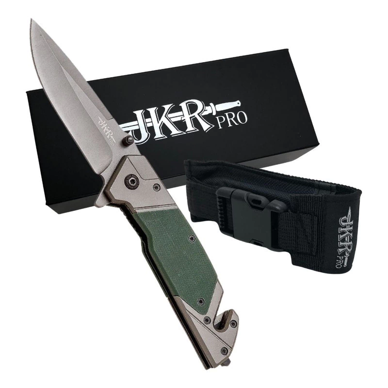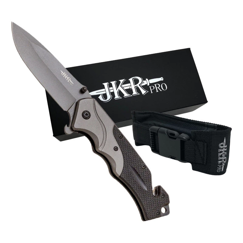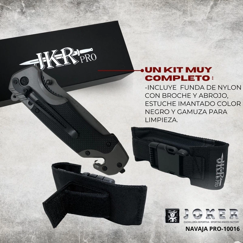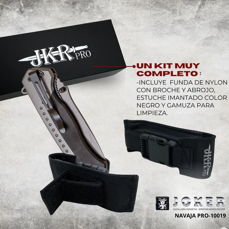 Las Navajas JKR PRO vienen en una caja con cierre magnético, acompañada de una funda nylon con broche y abrojo, lo que la convierte en un regalo ideal o en una excelente adición a cualquier colección de herramientas de alta calidad.