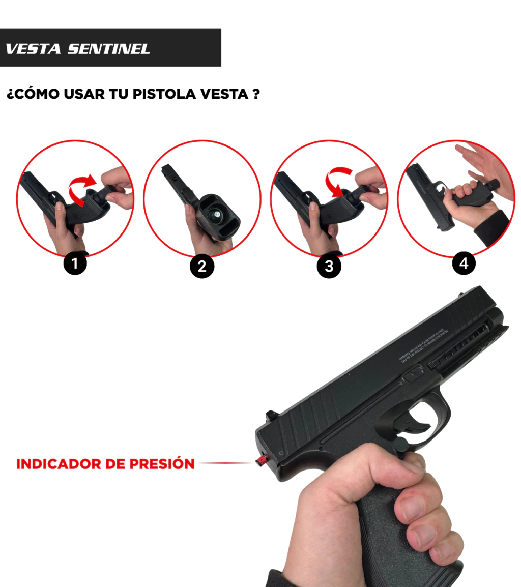 COMBO PISTOLA DISUASIVA VESTA SENTINEL CON ACCESORIOS