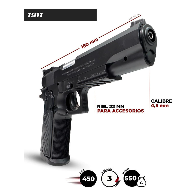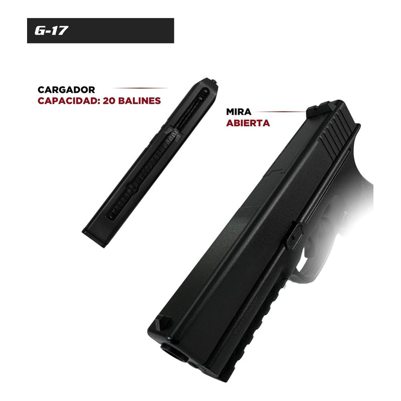 Este combo es ideal para los amantes del tiro deportivo que buscan un paquete completo y de alta calidad. Incluye la Pistola CO2 (Variantes a elegir: 1911/G-17 ) en calibre 4.5mm, una réplica detallada y potente que utiliza garrafas de CO2 de 12 gramos. Realizada en polímero asegura durabilidad y un rendimiento en cada disparo.