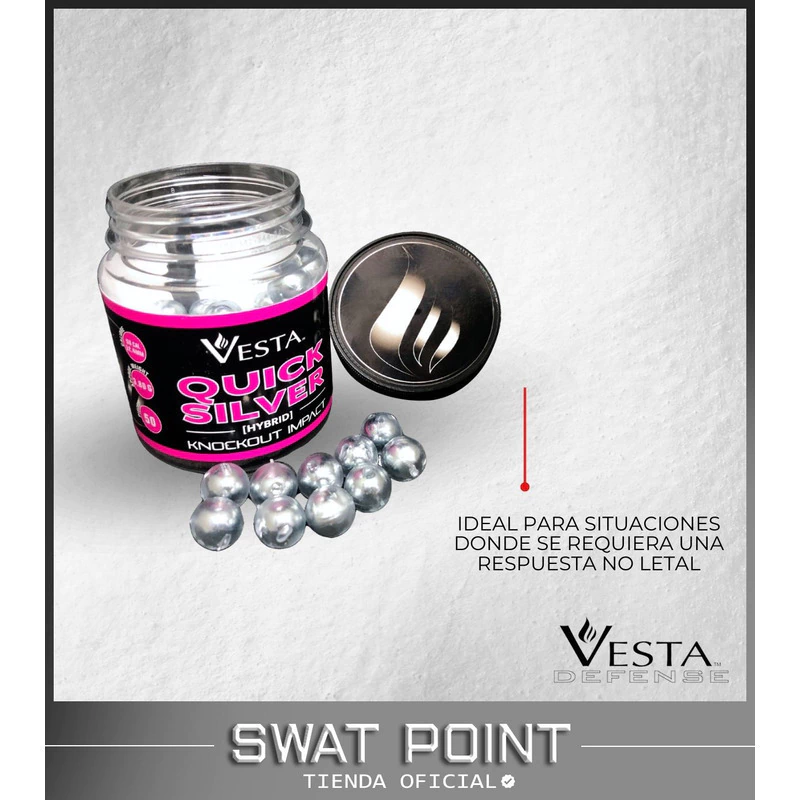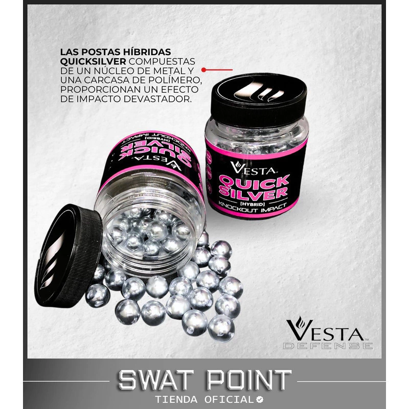 Vesta Quick Silver x50 - Calibre .50 Postas de acero recubiertas en polímero abs de alto impácto para pistolas disuasivas, traumaticas y defensa personal que otorgan gran velocidad y fuerza de impacto.
