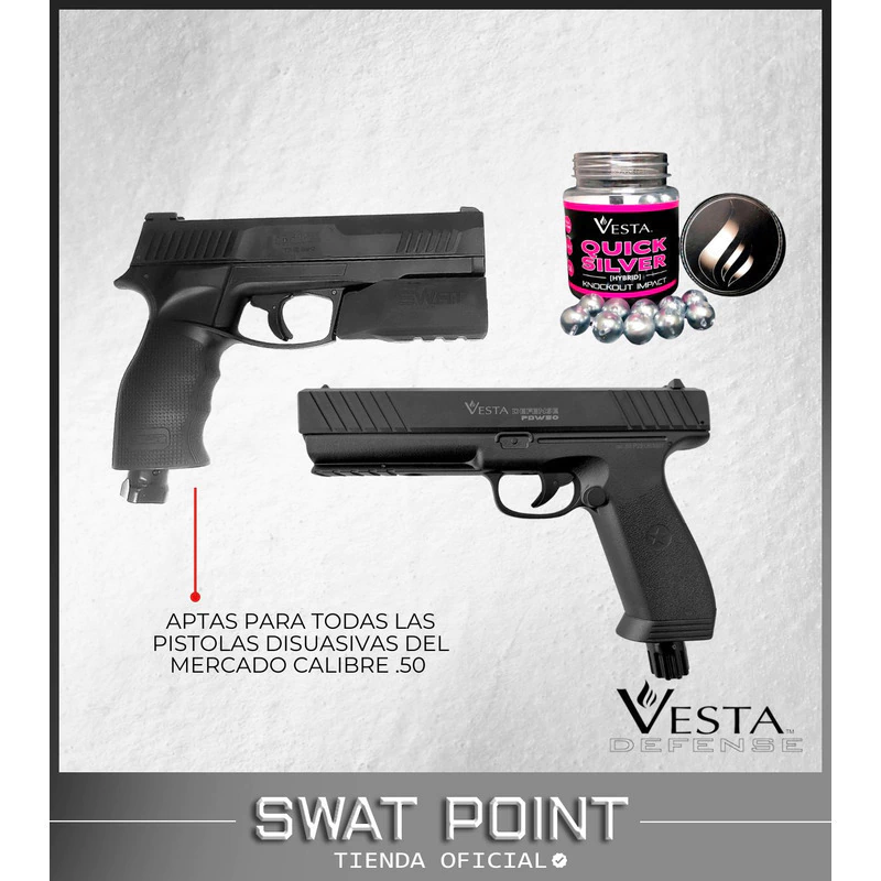 Si lo que vos estabas buscando era pasar al otro nivel con tu arma disuasiva, entonces las Postas Vesta Quick Silver .50 son la opción ideal para vos. Además, las municiones son aptas para todas las pistolas disuasivas de mercado calibre .50 - 12.5mm