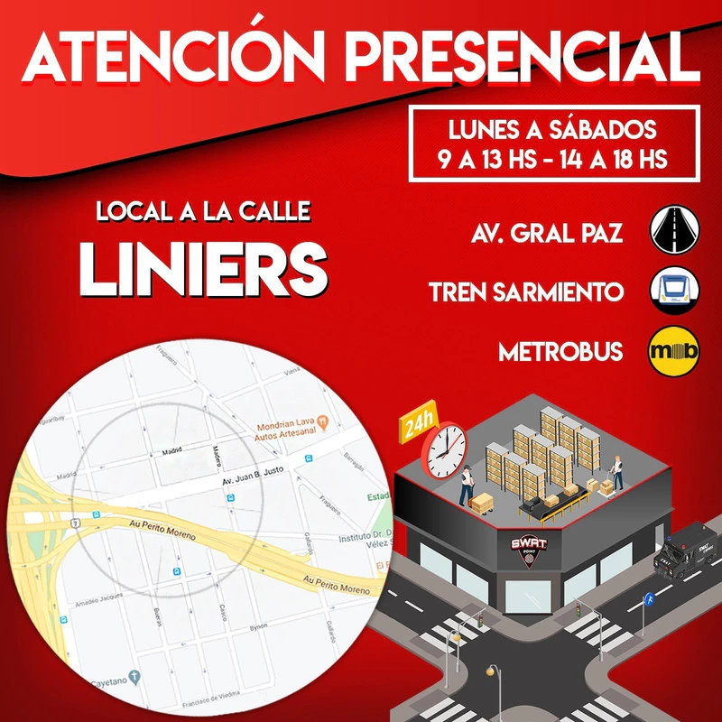 • Estamos ubicados en el barrio de Liniers, a pocas cuadras de la estación del tren Sarmiento y del Metrobus de Av. Juan B. Justo.