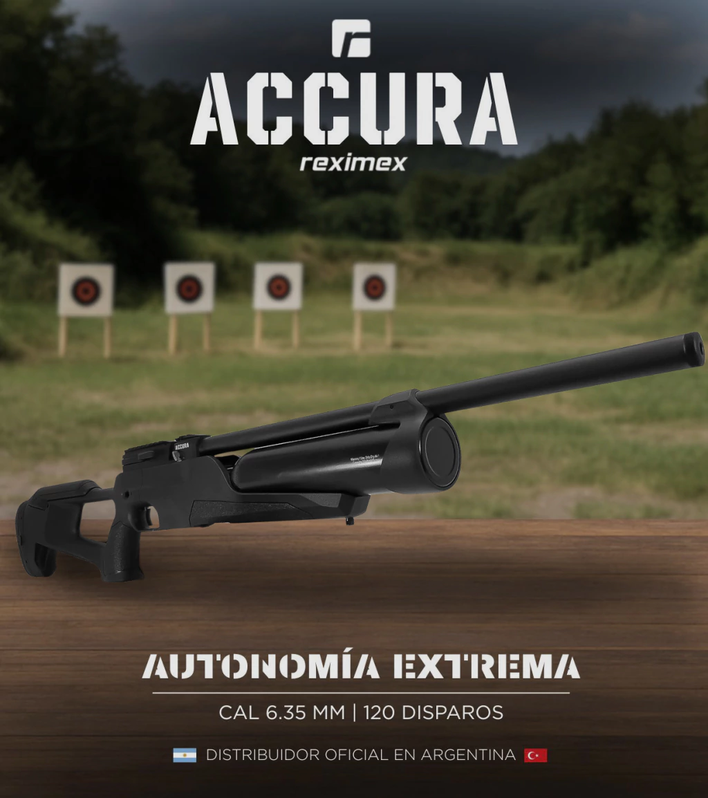 El rifle PCP Accura Reximex es una opción de alto rendimiento para quienes buscan precisión y potencia en un diseño moderno y ergonómico. Fabricado en Turquía por Reximex, una marca reconocida a nivel mundial, ofrece una estructura robusta con corona sintética ambidiestra y una palanca lateral (Side Lever) de carga manual, permitiendo una recarga suave y rápida. Su cañón de precisión con moderador de sonido integrado garantiza disparos silenciosos y agrupaciones excelentes, ideales para tiro deportivo.