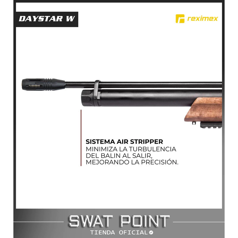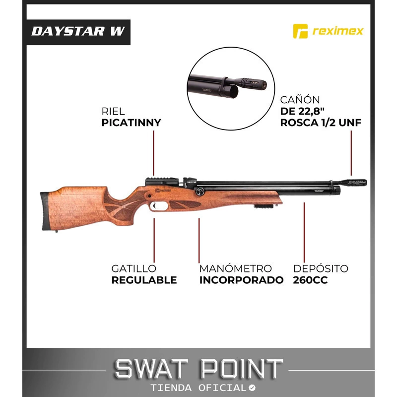 El rifle PCP Reximex Daystar Wood 6.35 mm es la opción ideal para quienes buscan potencia, precisión y diseño ergonómico en un formato ligero y resistente. Fabricado en Turquía, este PCP se destaca por su culata ambidiestra de madera de Nogal Turco ,brinda comodidad y estabilidad en cada disparo. Su sistema de carga Side Lever ultra suave permite un recargado rápido y fluido, ideal para sesiones de tiro dinámicas.