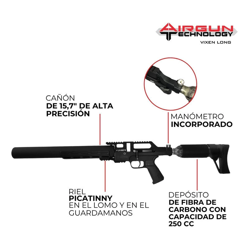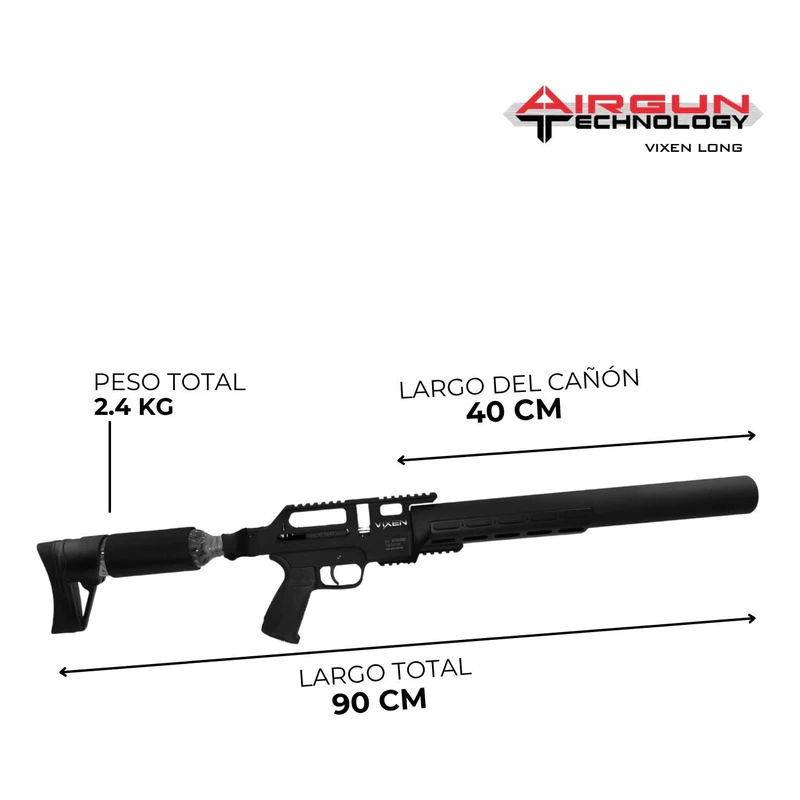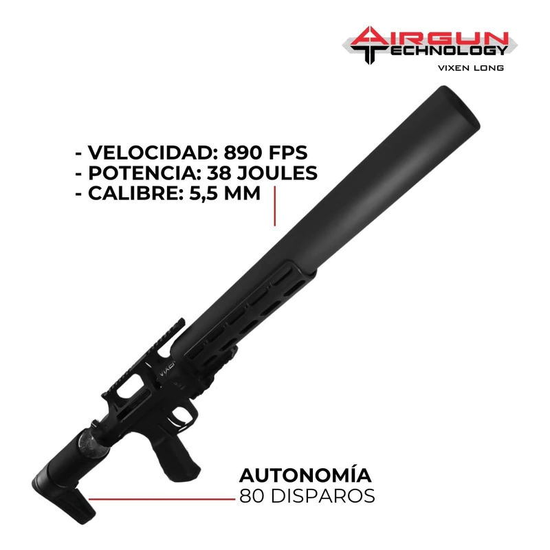 El Rifle PCP AGN Technology Vixen 5,5 mm es un aire comprimido del fabricante checo Airgun Technology. Este modelo ligero y equilibrado cuenta con un cañón CZ de 400 mm, ofreciendo una precisión superior en cada disparo. Una de las características más destacadas es su moderador de sonido de 50 mm de diámetro, que reduce el ruido sin afectar el balance del rifle.