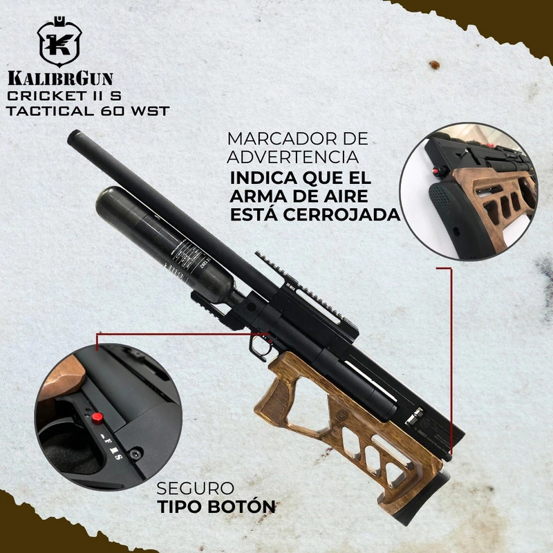 El CRICKET II S TACTICAL 60 WST es la elección perfecta para los tiradores que buscan un rifle de alta potencia y precisión con un diseño sofisticado. Su capacidad de mantener una energía constante, su fácil recarga y su ergonomía avanzada lo convierten en una herramienta indispensable para cualquier entusiasta del tiro.