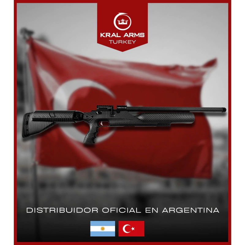 Potencia, autonomía y diseño se combinan en este combo exclusivo pensado para tiradores exigentes. El rifle PCP KRAL BIGMAX en calibre 7,62 mm (.30) ofrece hasta 60 disparos por carga gracias a su doble depósito de aire de 950 cc, y una potencia de 122 Joules. Disponible en dos variantes estéticas: textura fibra de carbono o camuflado, con culata táctica rebatible y terminaciones robustas para un uso intensivo.