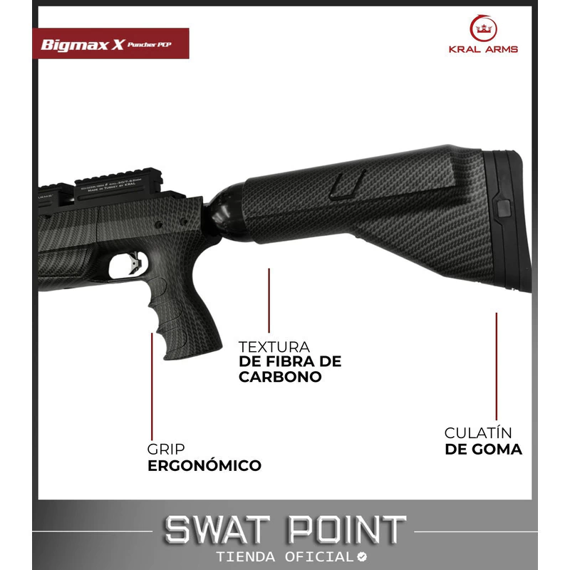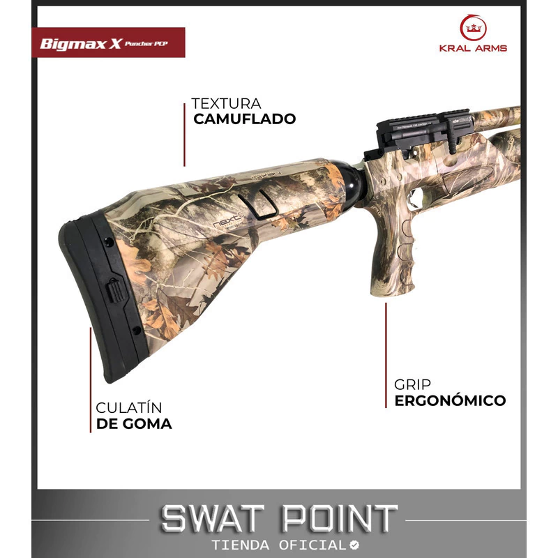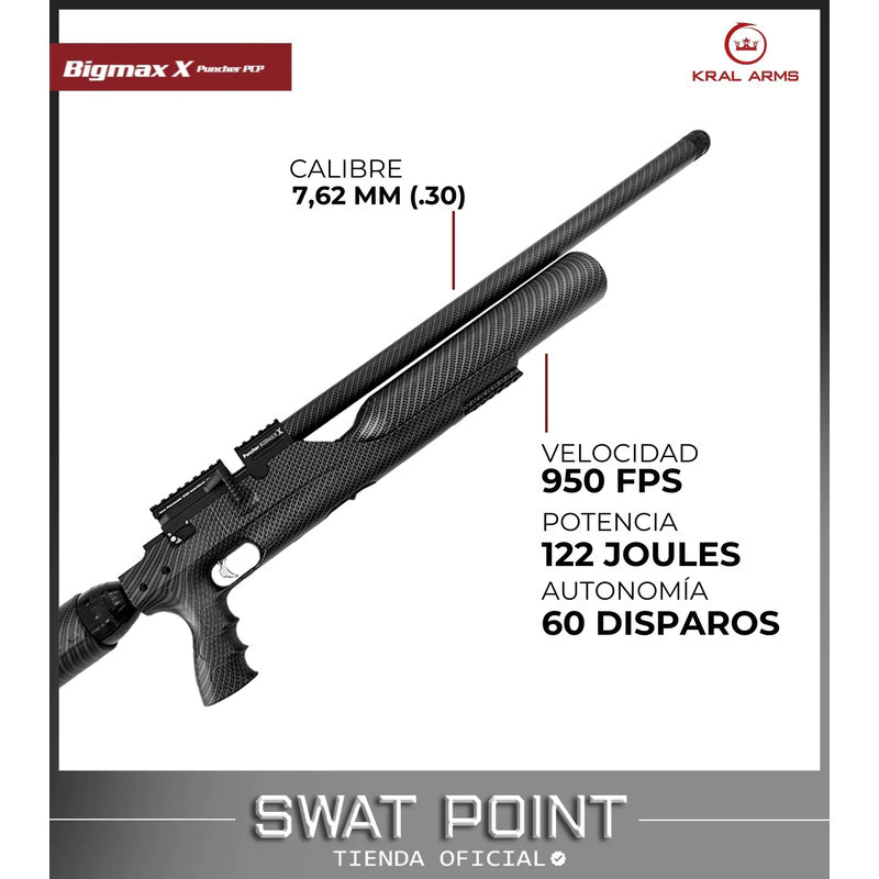 Combo Rifle PCP KRAL BIGMAX 7,62 mm + Inflador SWAT SA-400 + Balines Apolo Domed x100