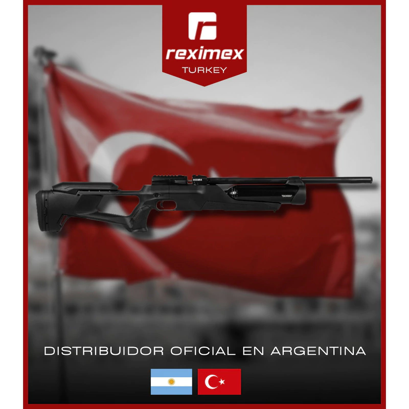 Si buscás potencia, precisión y versatilidad en un solo combo, el Reximex Accura 6.35 mm es la opción ideal. Este rifle PCP es una opción de alto rendimiento para quienes buscan precisión y potencia en un diseño moderno y ergonómico. Fabricado en Turquía por Reximex, una marca reconocida a nivel mundial, ofrece una estructura robusta con corona sintética ambidiestra y una palanca lateral (Side Lever) de carga manual, permitiendo una recarga suave y rápida. Su cañón de precisión con moderador de sonido integrado garantiza disparos silenciosos y agrupaciones excelentes, ideales para tiro deportivo.