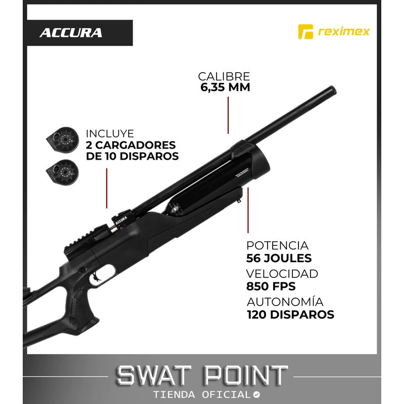 COMBO PCP REXIMEX ACCURA 6,35 MM + MIRA 3-9x40 SWAT AIRGUNS + BALINES + INFLADOR PCP SWAT AIRGUNS SA-310