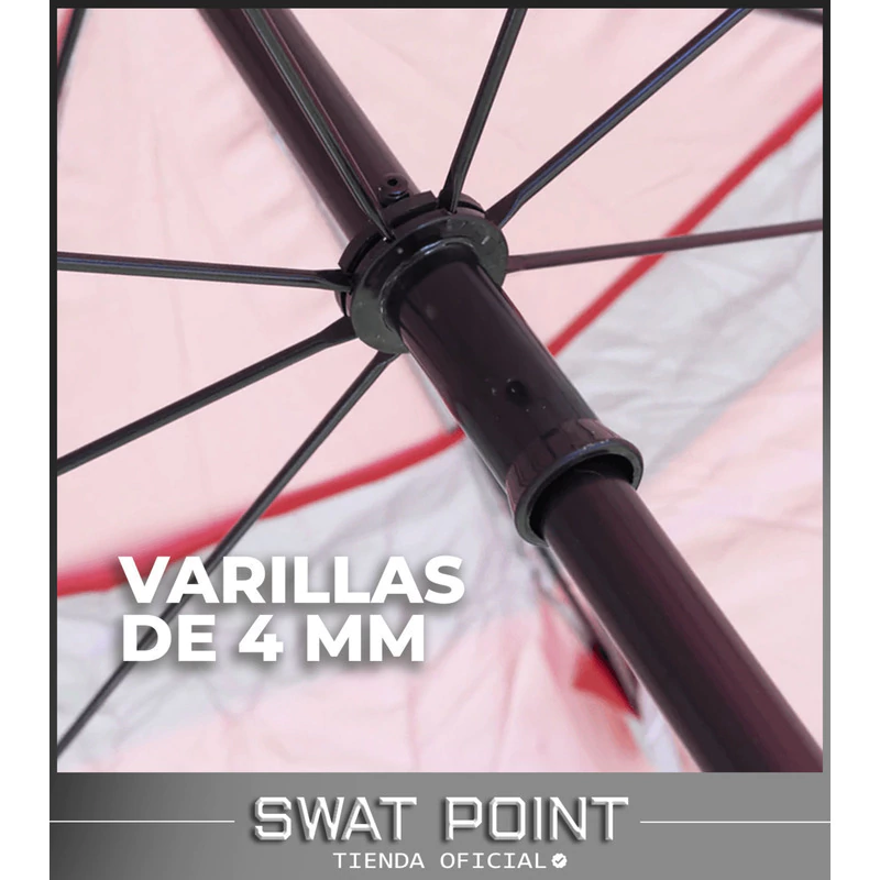 Ideal para toda la familia, combina funcionalidad y estilo. Está disponible en colores azul y rojo. Su estructura incluye estacas de sujeción distribuidas a lo largo de su diámetro y elásticos que aseguran un armado estable y resistente en cualquier terreno.