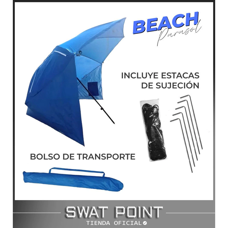 Disfrutá del verano en la costa argentina con esta sombrilla con paraviento de 2,5 metros, diseñada para brindarte máxima protección contra el viento y el sol.