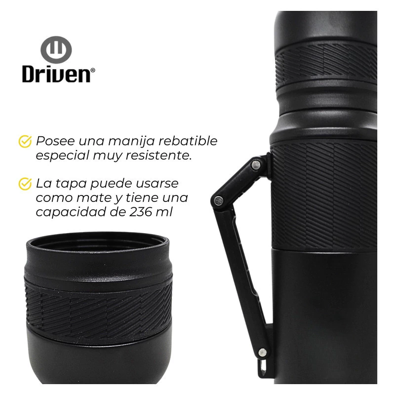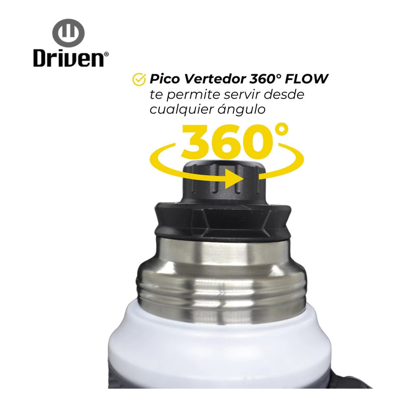 Experimentá la comodidad y la funcionalidad con los termos Driven FLOW. Equipados con una manija rebatible especial y una agarradera de silicona antideslizante, estos termos te brindan un agarre seguro en todo momento.