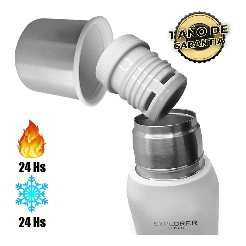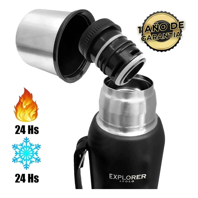 El termo Explorer cuenta con un tapón cebador para volcar el agua de costado (aflojándolo previamente), lo que evitará que te quemes cuando ésta salga del termo. A esto se le suma su práctica manija lateral para agarrarlo con mayor facilidad y verter el líquido rápidamente.