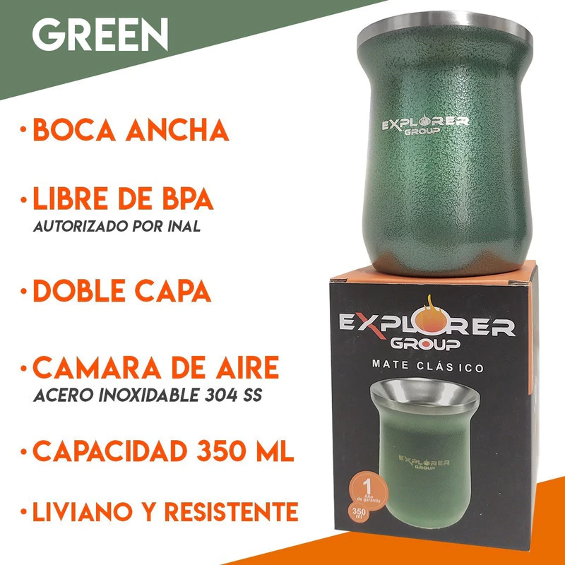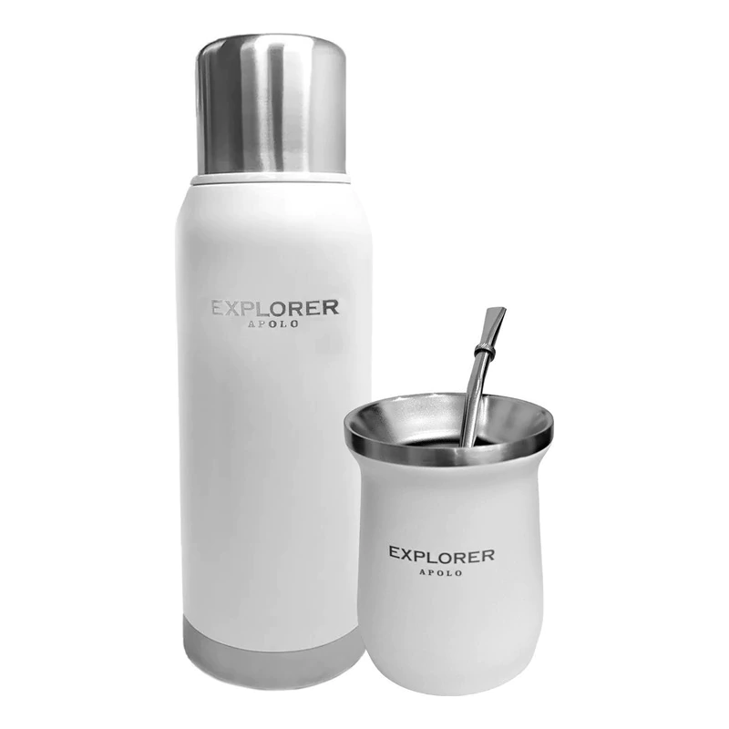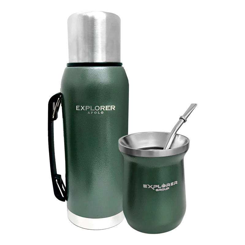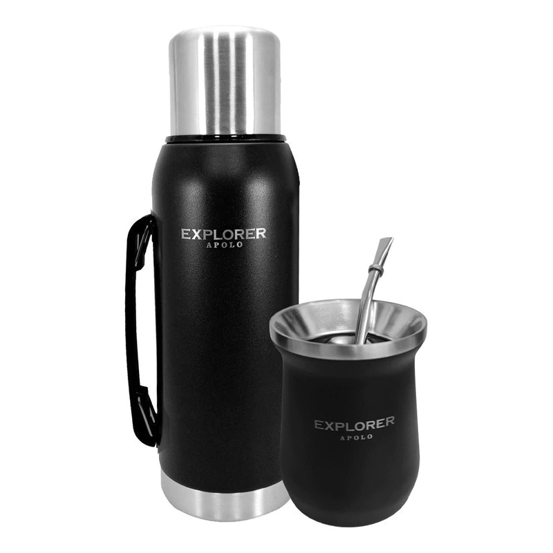 COMBO TERMO EXPLORER ACERO INOXIDABLE 1 LITRO CON TAPÓN CEBADOR + MATE TÉRMICO 236 ML + BOMBILLA DE REGALO