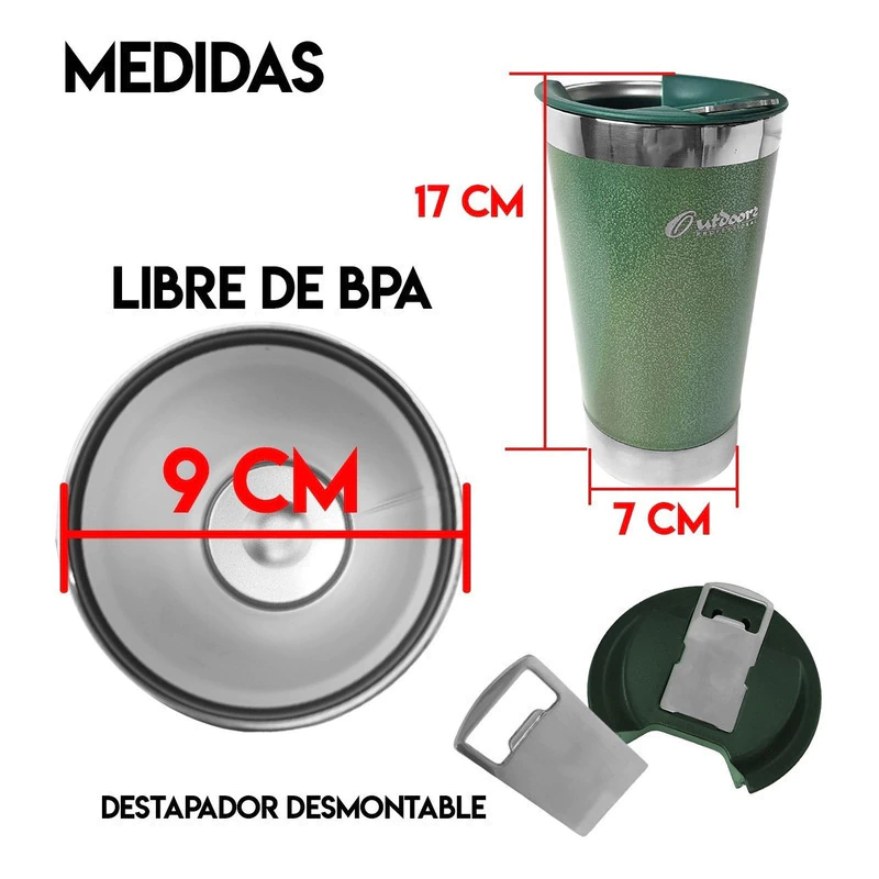 Con tapa y destapador de acero inoxidable, deja tu bebida fría 1 hora sin necesidad de hielo!