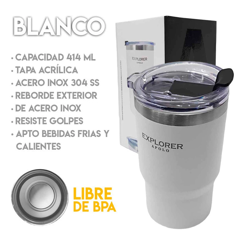 Llegó el mejor vaso térmico con una capacidad de 414 ml, cuenta con una cámara de aire y dos capas de acero inoxidable 304 SS manteniendo la temperatura por mucho tiempo.